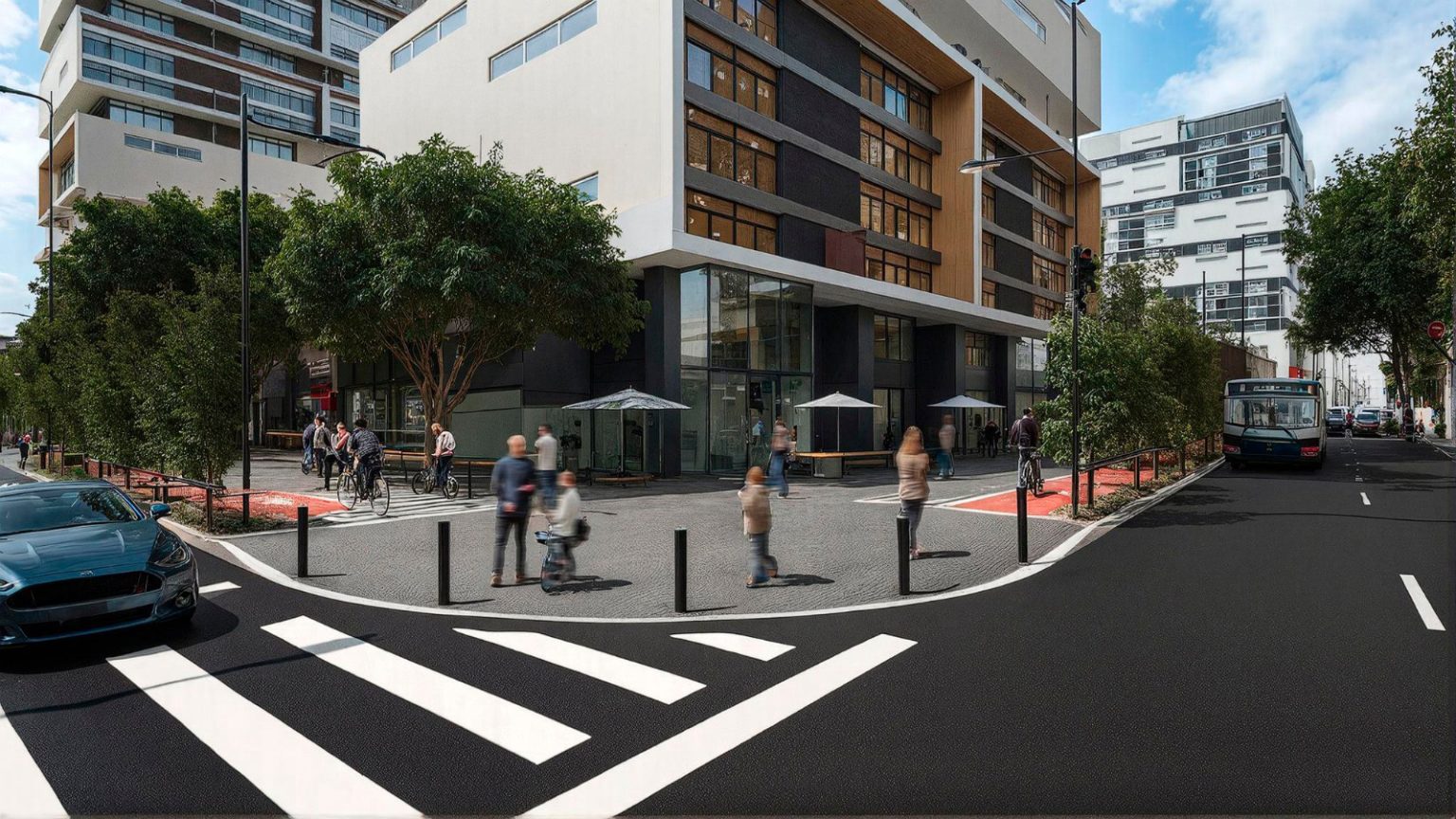 La propuesta incorpora infraestructura verde como jardines de lluvia, capaces de atraer y filtrar agua de lluvia mediante la plantación de 300 especies de árboles y arbustos, que aportan a la gestión sostenible del agua pluvial y a la mejora del microclima urbano. La implementación de 4000 m² de redes peatonales y 310 metros de ciclovía refuerzan la movilidad activa, conectando eficientemente las avenidas La Prensa y Amazonas. Esta intervención, alineada con el modelo territorial del PMDOT 2021–2033, beneficiará a más de 12.600 personas, consolidando un espacio resiliente que mejora la experiencia urbana y promueve la equidad en el acceso al espacio público.